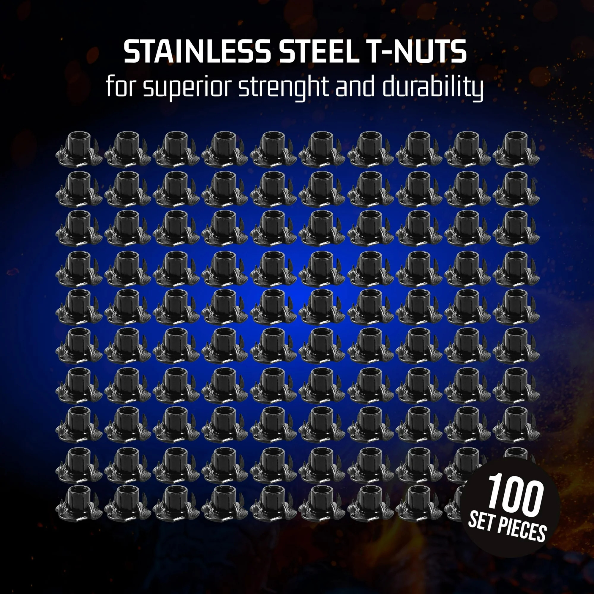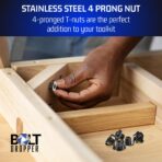 • Durable Materials: Made from high-quality stainless steel, these T-nuts resist wear and tear; includes 3/8-16 4-prong zinc T-nuts and black steel insert nuts for lasting reliability