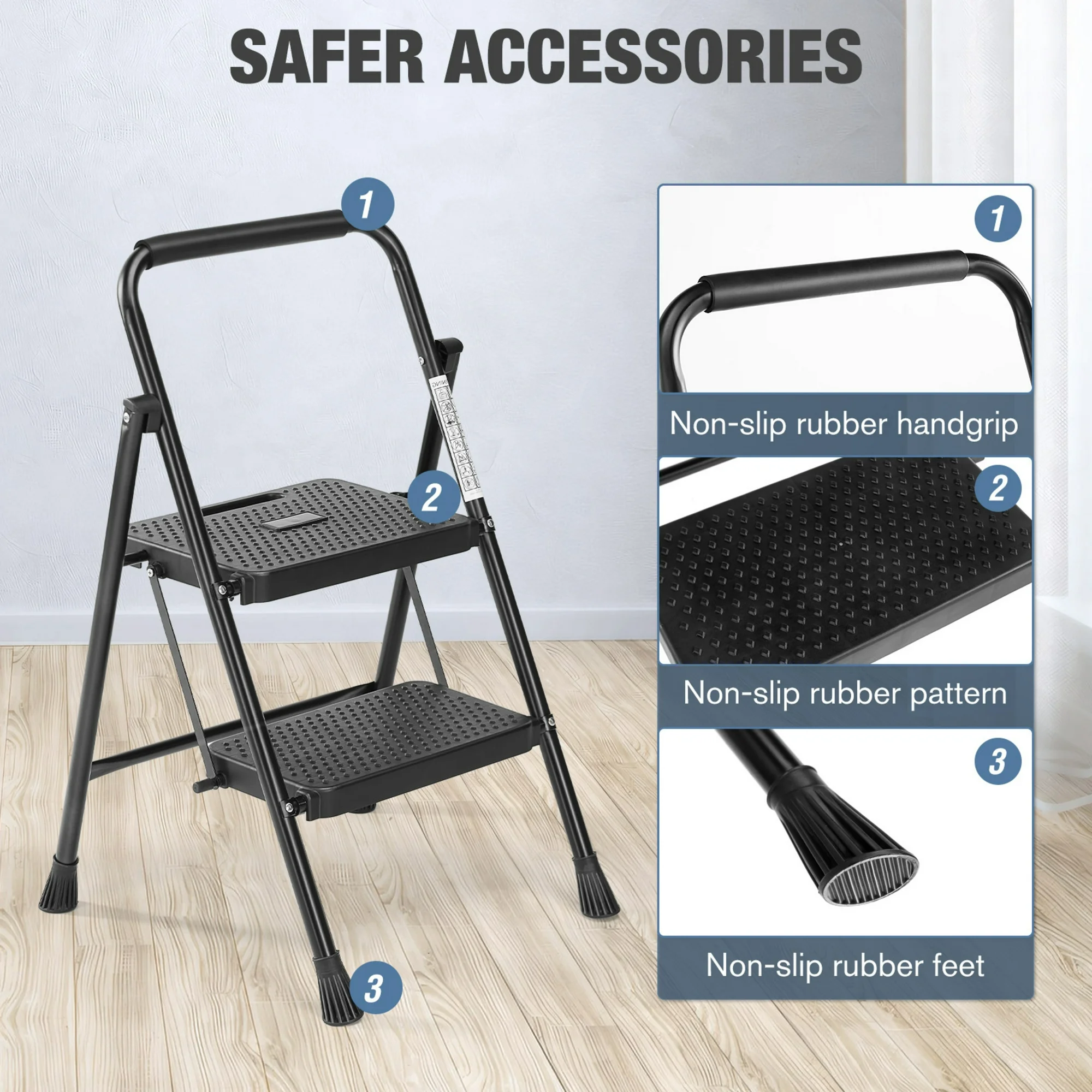 edx 2 Step Ladder, Portable Folding Step Stool Heavy Duty Anti-Slip, Lightweight 800Lbs Capacity