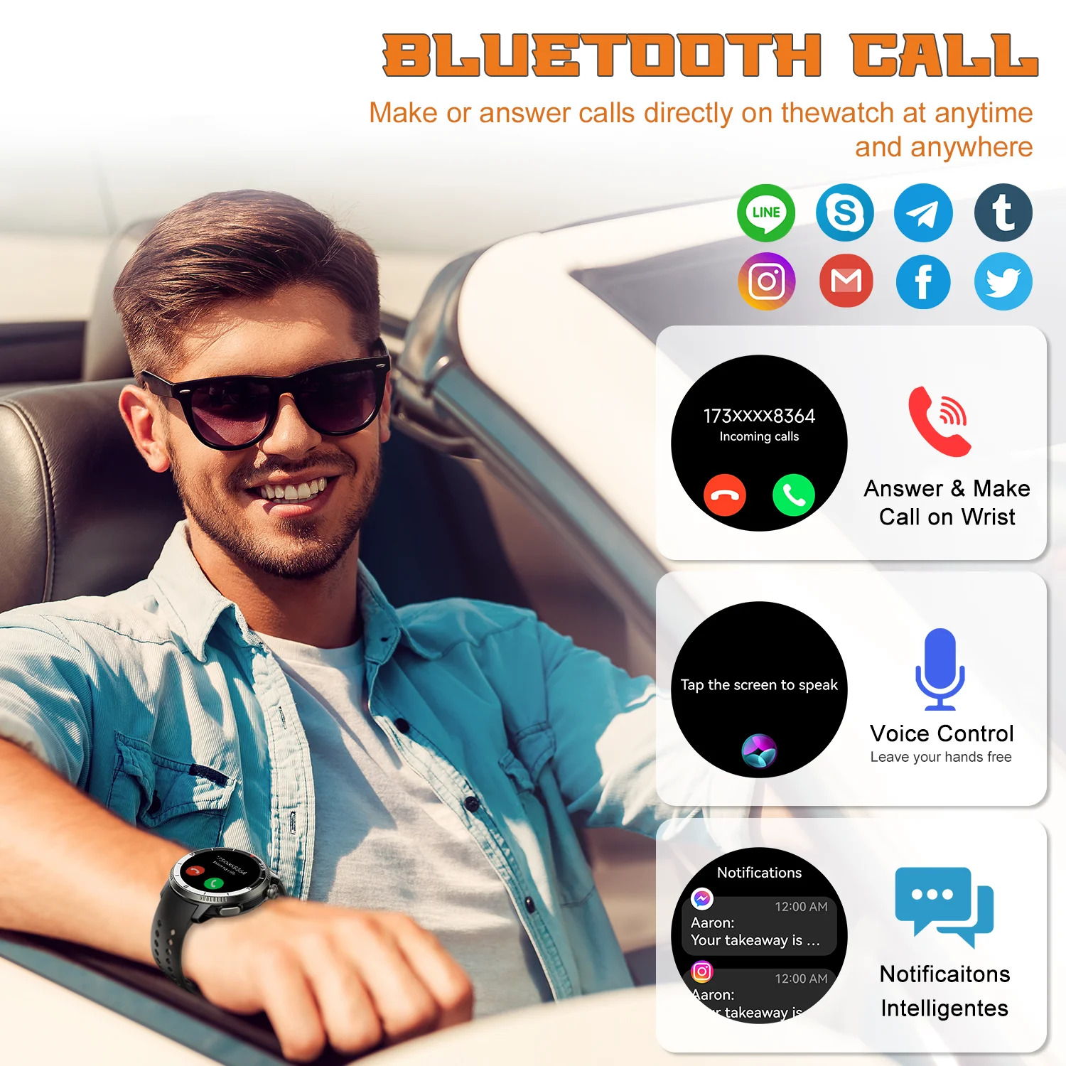 - Smart Communication: Features Bluetooth calling with a built-in microphone and Hi-Fi speaker, enabling users to answer/make calls directly from the watch and receive instant notifications for calls, SMS, and app messages.