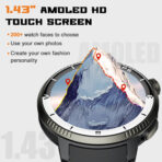 - Vivid Display: Equipped with a 1.43″ HD AMOLED touch screen (466*466 resolution) and offers 100+ customizable watch faces, including the option to use personal photos as wallpaper.