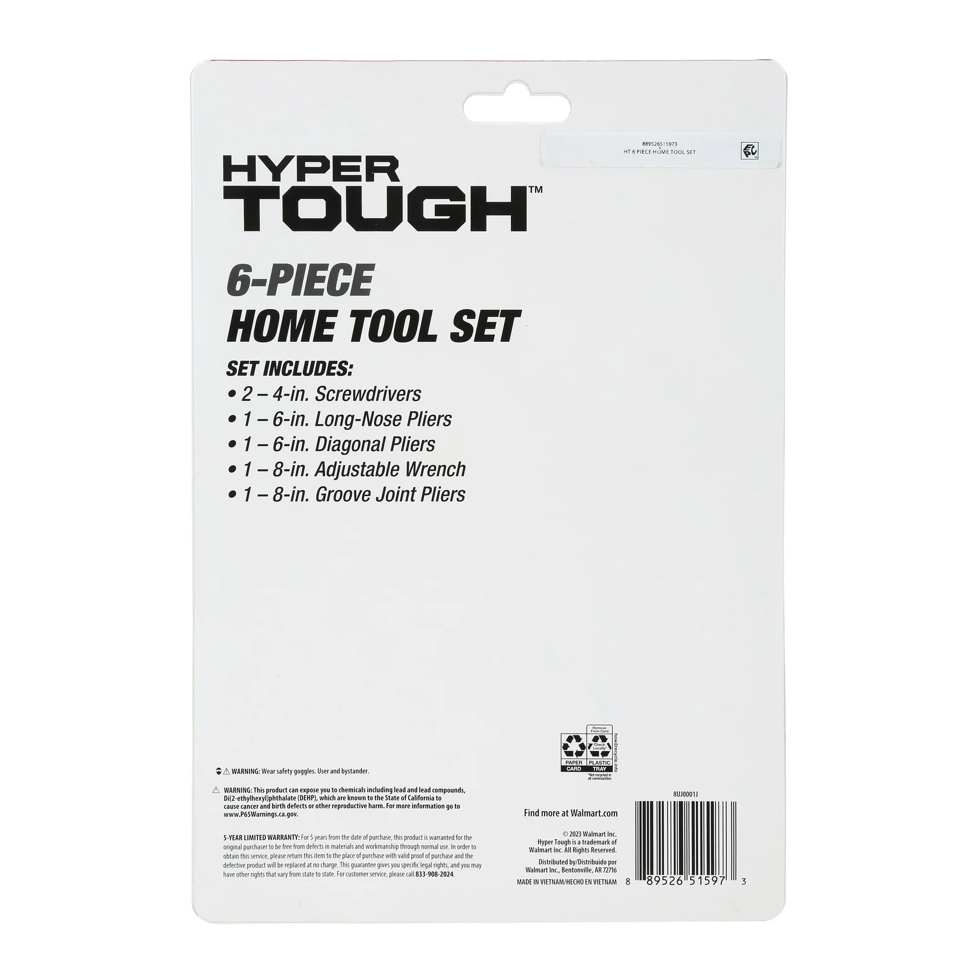 - Comprehensive Set: Includes 6″ diagonal pliers, 6″ long nose pliers, 8″ adjustable wrench, 8″ groove joint pliers, and two 4″ screwdrivers.