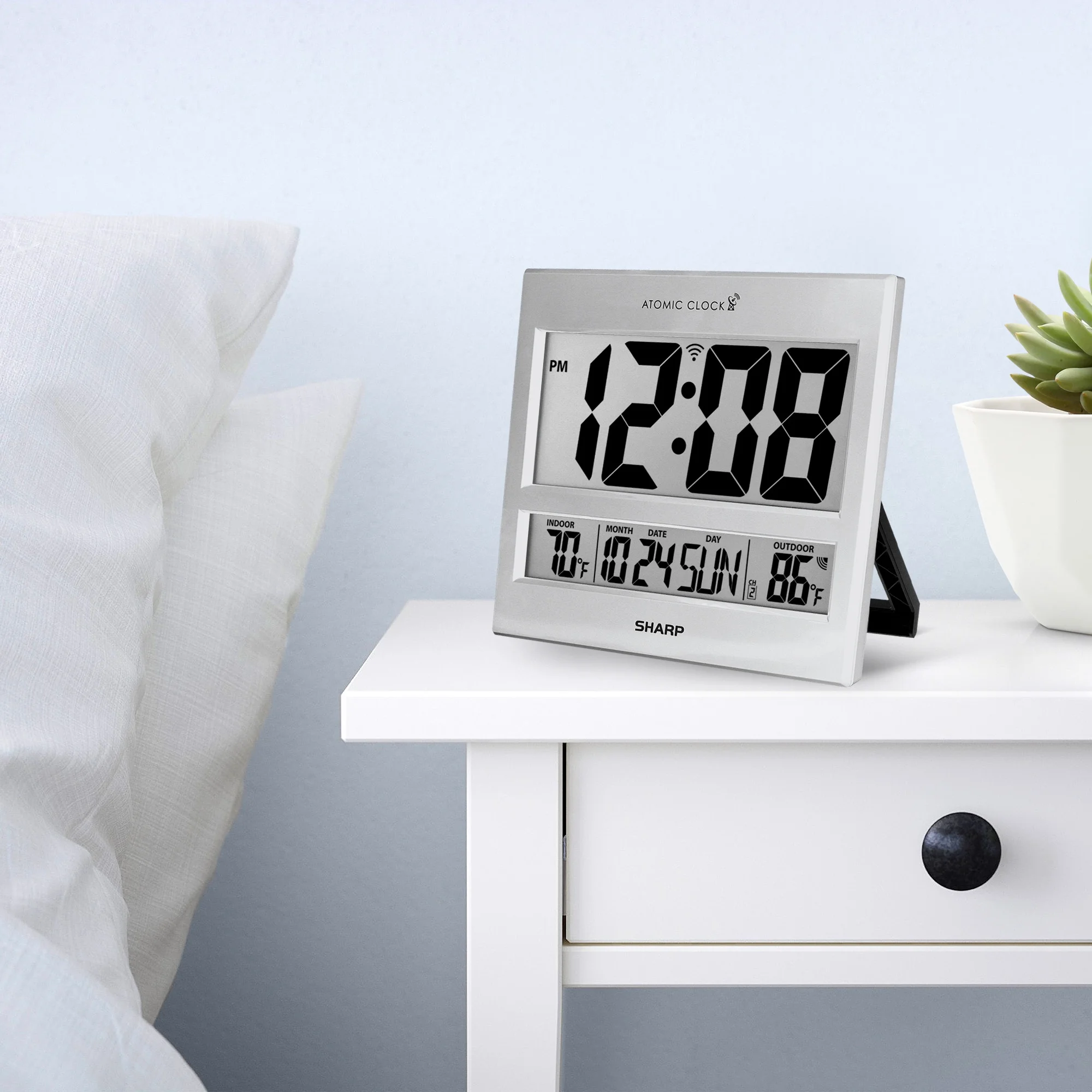 Be the first to review “Sharp Atomic Clock – Jumbo 3″ Easy to Read Numbers – Never Needs Setting! – Indoor/ Outdoor Temperature Display with Wireless Outdoor Sensor – Silver”